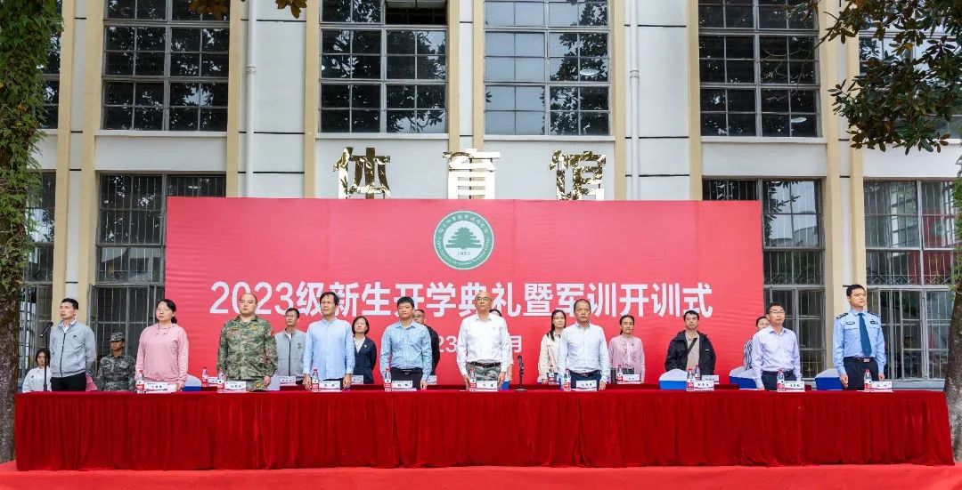 学院党政领导,延平区区委常委、延平区人民武装部上校部长李顺才,延平区夏道镇镇长叶正祥,延平区梅山街道党工委书记张辉,夏道镇、小鸠村、梅山街道有关领导,学院相关部门负责人,各系党总支书记、系主任、学生科长、2023级新生辅导员和2023级全体新生出席2023级新生开学典礼暨军训开训式。典礼由学院副院长谢金生主持。