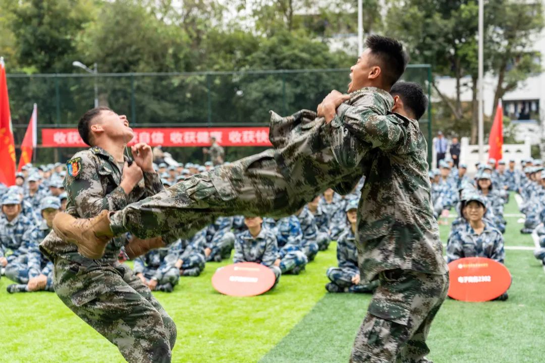 最后,军训团教官向全体人员做军训示范整套动作标准规范、整齐流畅。