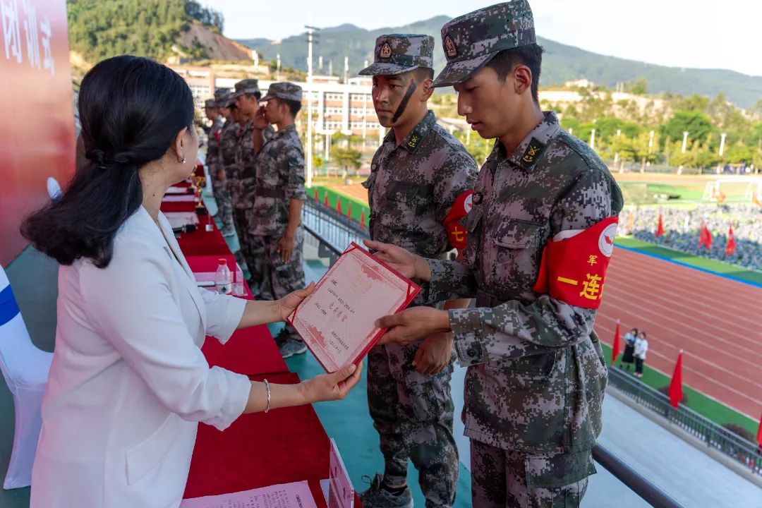 “优秀班级”、“优秀教官”、“优秀学员”、“内务标兵宿舍”、“军歌班班唱比赛获奖班级”……那些汗水和荣誉都在此刻成为勋章,军训虽落幕,青春不止步,今日的我们以你为荣!