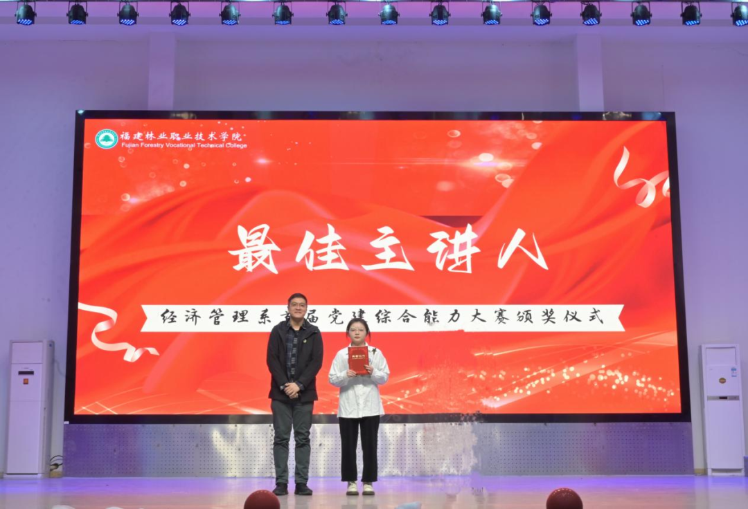 本网讯 为进一步巩固学习贯彻习近平新时代中国特色社会主义思想主题教育成果,在广大师生党员中营造人人关注党建、学习党建的浓厚氛围,我院经济管理系党总支组织开展了以“‘以赛促学’强党性,‘擂台比武’树先锋”为主题的党建综合能力大赛。2023年11月30日,大赛决赛在天麟校区礼堂拉开帷幕。院党委副书记、院长刘文开,院党委委员、组织部(统战部)部长李霞,学生工作部部长陈友益,中信建投证券股份有限公司南平八一路党支部书记王诚,福建省南平司法强制隔离戒毒所第三党支部副书记黄军,南平实验小学党委第三支部支委应绍仁,中国电信延平分公司党支部刘小杭,经管系主任林文胜,经管系党总支副书记(主持工作)王昉,经管系副主任、教工党支部书记宋李玉,经管系专职组织员张翼翔,经管系学生科团总支负责人胡斌及学生各党支部书记、全体专职辅导员、党建共建单位党员代表、经管系师生党员、入党积极分子代表共计400余人参加本次大赛。