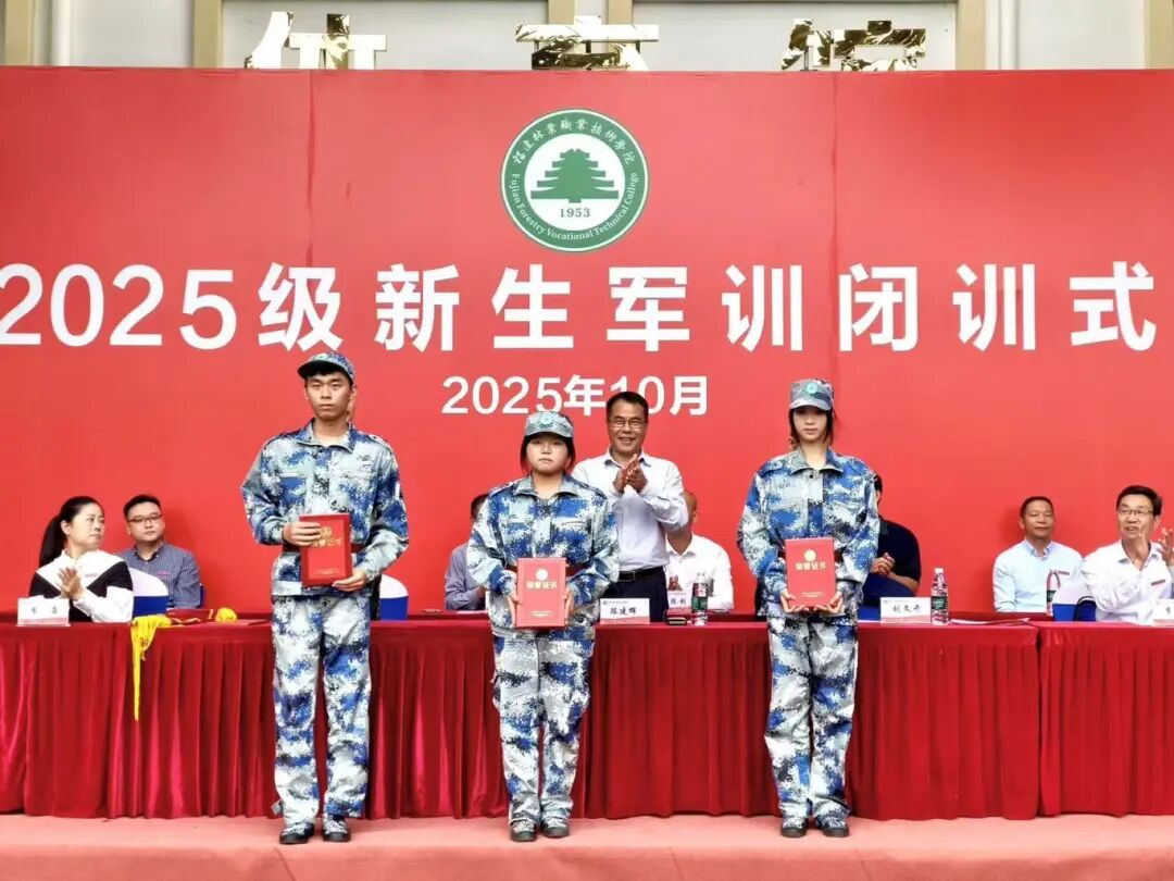 本网讯 10月26日至27日,福建林业职业技术学院天麟、江南两校区先后举行2025级新生军训闭训式。学院党委书记陈建辉,学院党委副书记、院长刘文开,学院党委委员、纪委书记詹其仙,学院党委委员、副院长黄晖,学院党委委员、副院长李肇锋,学院党委委员、组织(统战)部部长李霞,学院党委委员、宣传部部长、马克思主义学院院长邹小燕,学院相关部门负责人,各系党总支书记、系主任、党总支副书记、学生科长和2025级新生辅导员与全体参训学生共同为为期半个月的军训生活画上圆满句号。闭训式均由学院党委副书记严绍裕主持。