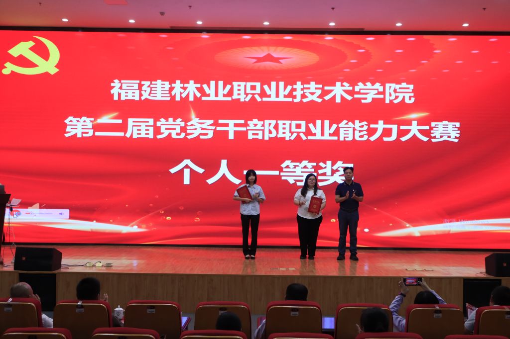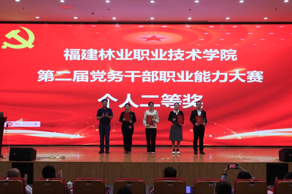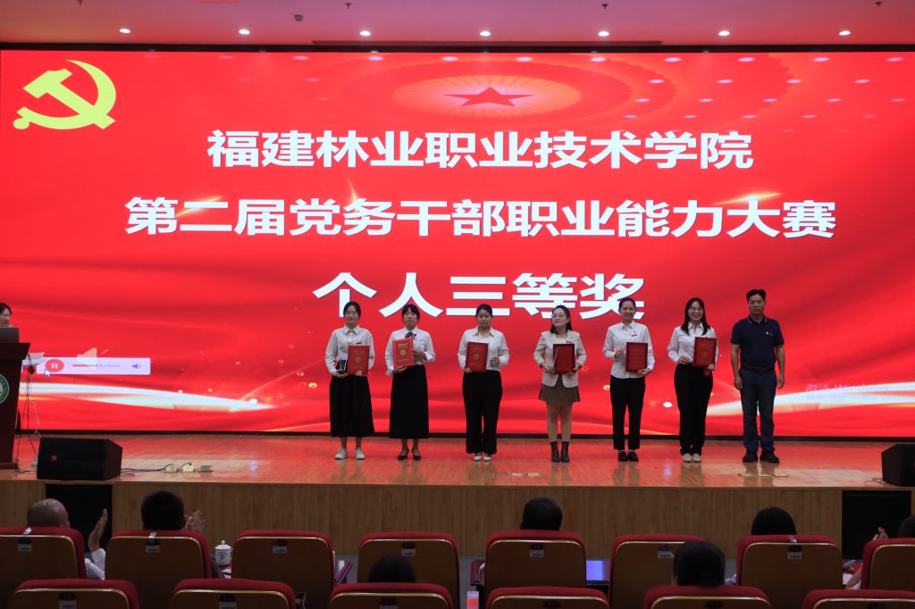本网讯 福建林业职业技术学院第二届党务干部职业能力大赛自9月启动以来,共有46名基层党务工作者积极报名参赛。比赛分别设置“党务知识竞赛”“主题党日策划”“微党课”三个赛项。10月21日,比赛在江南校区学术报告厅圆满收官,并举行颁奖仪式。经激烈角逐,林学系党总支荣获大赛团体一等奖,建筑工程系党总支、园林系党总支荣获大赛团体二等奖,交通工程系党总支、智能制造系党总支、经济管理系党总支荣获大赛团体三等奖,信息工程系党总支、艺术传媒系党总支荣获大赛团体优秀奖。12名选手分别获得个人综合奖一、二、三等奖。大赛分别设置三个赛项的单项一、二、三等奖。