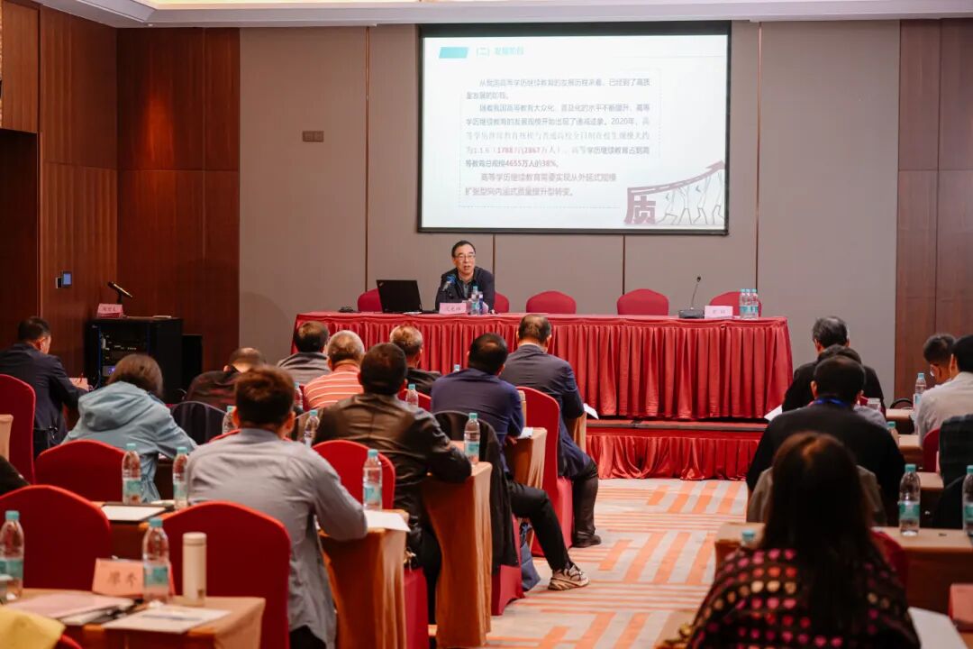 在专题报告环节,福建开放大学沈光辉教授作《推动高等继续教育高质量发展 助力全民终身学习》主题报告。北京林业大学继续教育学院院长王晓旭作学院年度主题报告,系统回顾工作成果,展望未来发展路径。
