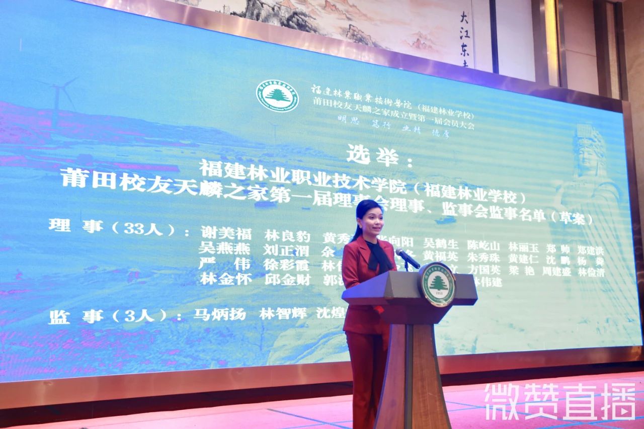 接着,大会审议通过了《福建林业职业技术学院莆田校友天麟之家章程》《福建林业职业技术学院莆田校友天麟之家选举办法》《福建林业职业技术学院莆田校友天麟之家财务管理办法》,选举产生了第一届莆田校友天麟之家理事会理事、监事会监事。