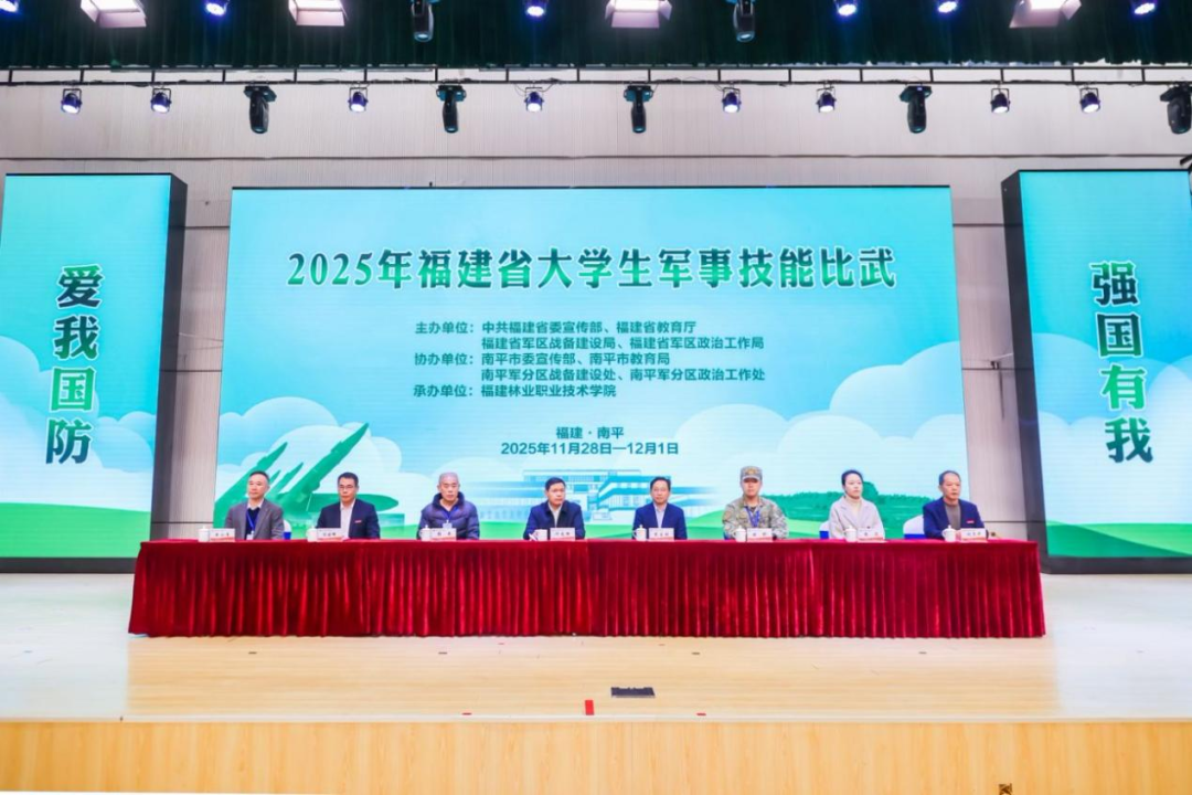 本网讯 2025年11月29日上午,由中共福建省委宣传部、省教育厅、省军区战备建设局、省军区政治工作局联合主办,福建林业职业技术学院承办的“2025年福建省大学生军事技能比武”活动在福建林业职业技术学院江南校区体育馆隆重开幕。来自全省72所高校的576名参赛选手齐聚闽北,整装待发,共同迎接这场军事素养与青春风采的盛会。