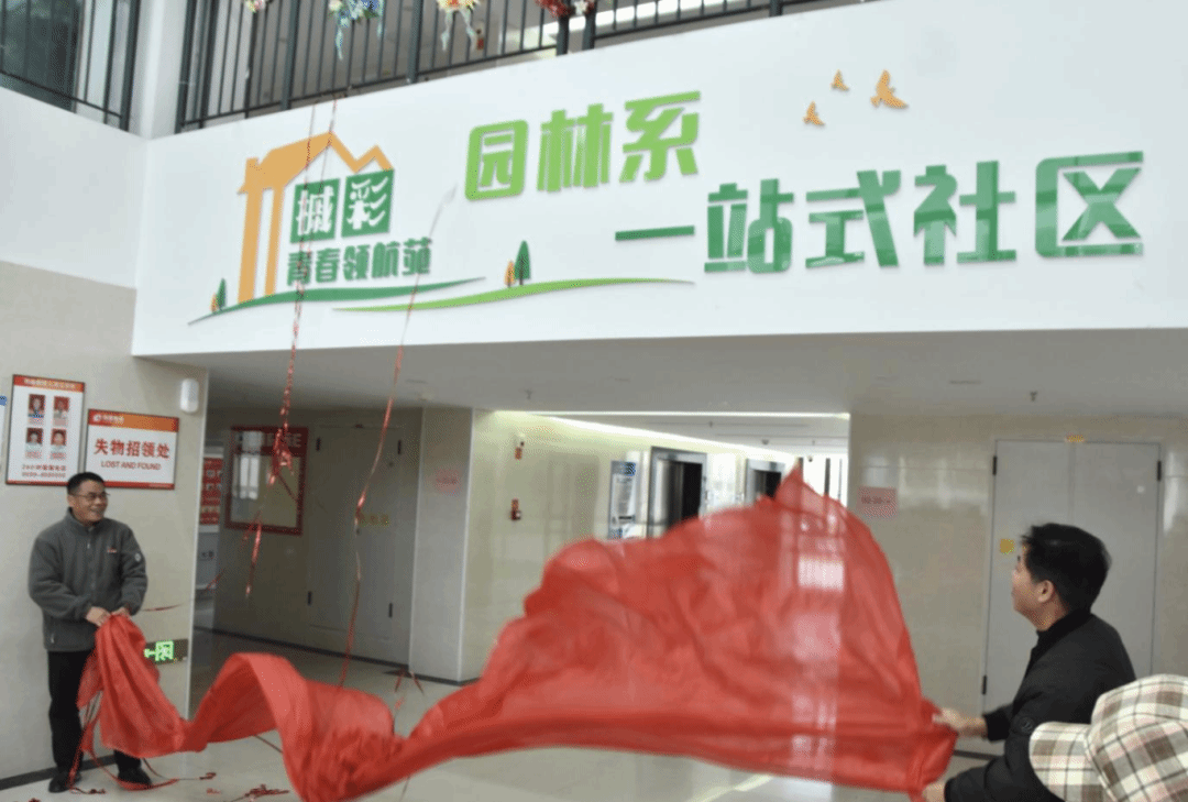 院党委书记陈建辉与院党委副书记严绍裕共同为“园林系‘一站式’学生社区”揭牌,标志着园林系育人工作迈入“阵地前移、服务下沉”的新阶段。