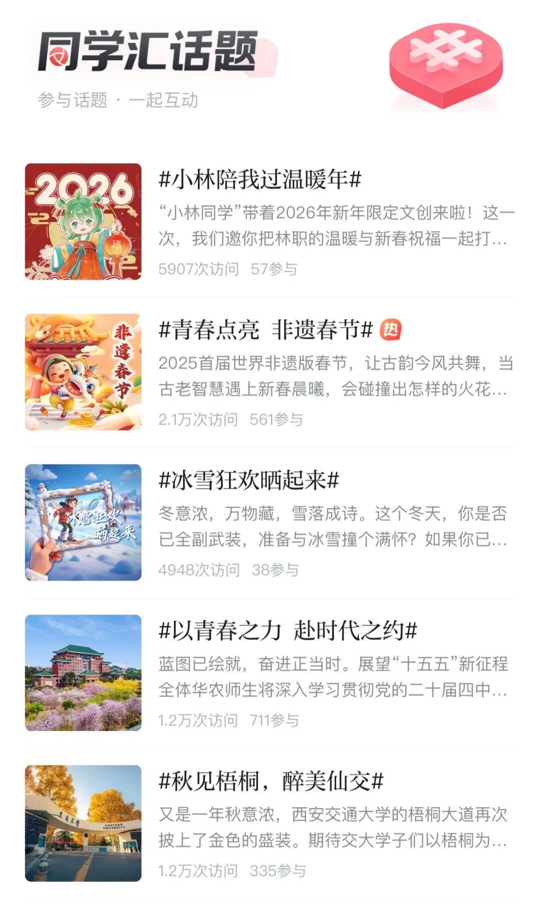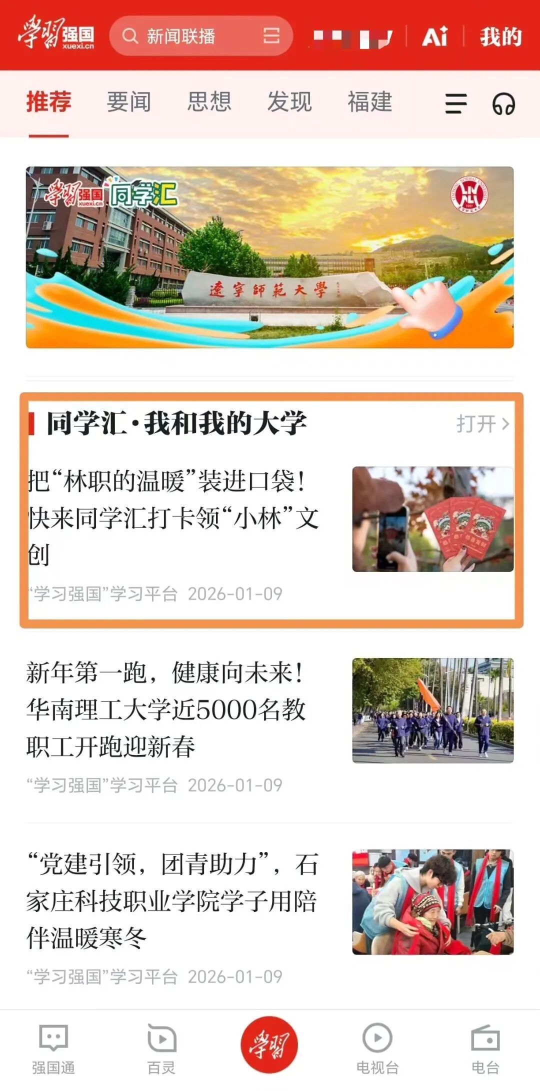 “同学汇”是“学习强国”为推动党的创新理论进校园、进课堂、进学生头脑而研发的一款青年思政社交产品。“同学汇”以用户生产内容(UGC)为主要内容形态,具有开放性、互动性、安全性等特点,已上线搜索、审校、话题、榜单等上百项功能。加入“同学汇”的用户能够一键上传发布图文短视频、找同学、找校友。福建林业职业技术学院在运营好学院网站、官方微信公众号的同时,通过加强“学习强国”同学汇等平台建设,构建新媒体矩阵传播体系,讲好“天麟”故事,传播林职声音。