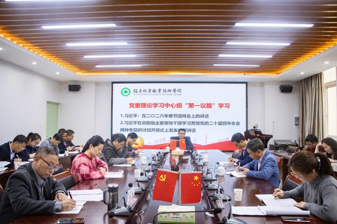 会议强调,习近平总书记在省部级主要领导干部学习贯彻党的二十届四中全会精神专题研讨班开班式上发表的重要讲话,对于党员干部准确把握“十五五”时期经济社会发展的指导方针、主要目标、重点任务,具有十分重要的意义。全院上下要进一步加强党的创新理论学习,牢牢坚持“全面深刻准确”六字方法论,深入领会和把握党的二十届四中全会对“十五五”时期经济社会发展作出的战略部署。要不断提高党员干部能力水平,增强实干本领,树立和践行正确政绩观,大力发扬斗争精神,坚定不移惩治腐败,为学院事业高质量发展清障护航。要深化产教融合、科教融汇,紧扣林业职业教育特色,主动对接福建省林业千亿产业集群和生态文明建设需求,加快推进专业群建设与现代林业产业体系相匹配,在主动服务乡村振兴和林业现代化中彰显办学价值。