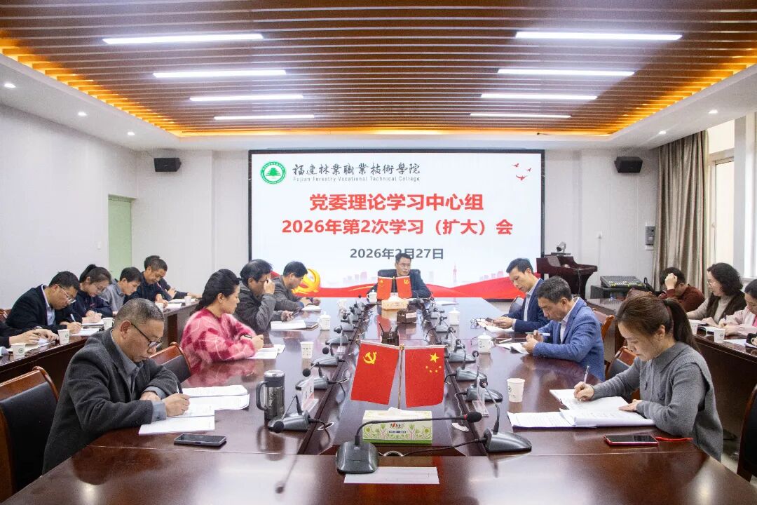 本网讯 2月27日下午,院党委书记陈建辉在江南校区行政楼五楼会议室主持召开2026年第2次党委理论学习中心组学习(扩大)会,党委理论学习中心组成员及各系党总支书记、机关处室党支部书记参加学习。