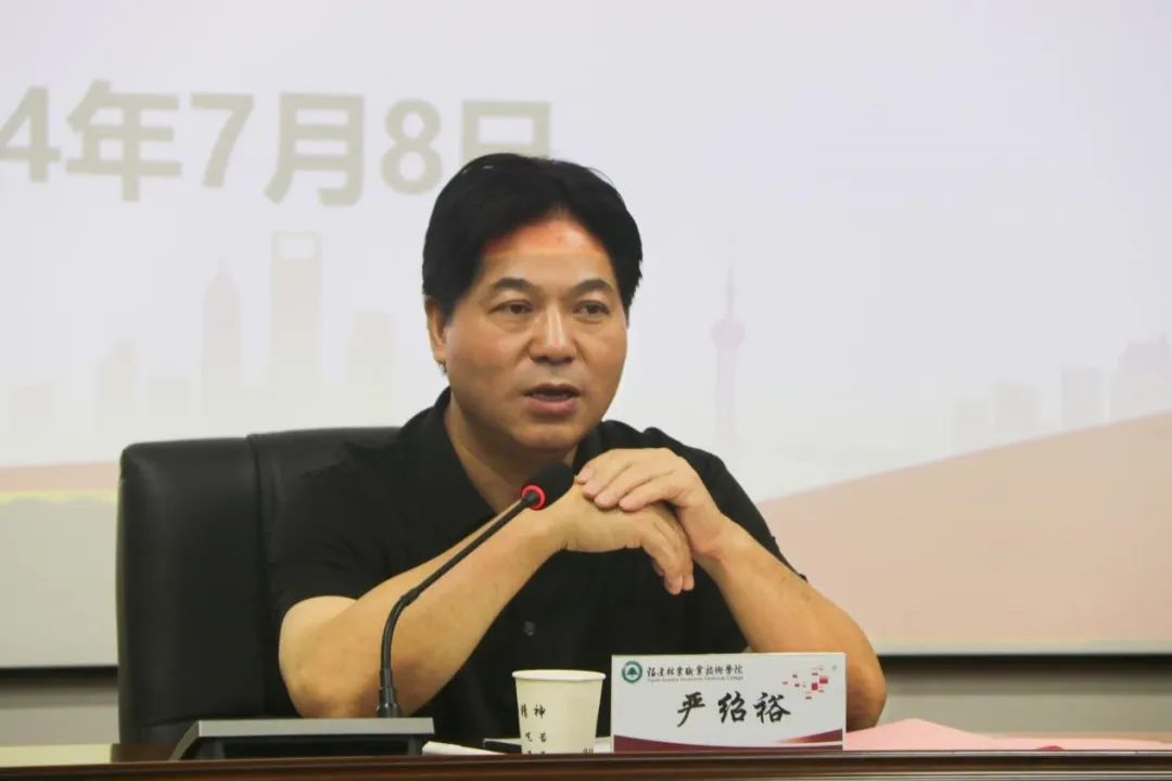 为确保本次培训班高质量圆满举办,2024年7月8日下午,学院在江南校区行政楼六楼会议室举行2024年暑期辅导员职业能力提升培训班动员会,学院党委副书记严绍裕作开班动员讲话。学生工作部部长陈友益、学生工作部副部长陈红英、各系学生科长和全体参训辅导员参会,会议由陈友益部长主持。