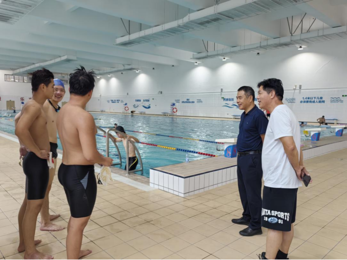 陈建辉书记详细询问了同学们的训练情况,鼓励大家在身体允许的情况下,加强训练,增强体能,学院将尽力配合运动员的训练需求。同时,陈书记充分肯定了我院游泳队训练工作,对参与训练的同学寄以期望,他勉励同学们要弘扬团队精神,凝心聚力为林职院增光添彩。指导老师和同学们备受鼓舞,纷纷表示将以更加饱满的精神状态投入到备战训练中去,确保圆满完成参赛任务。