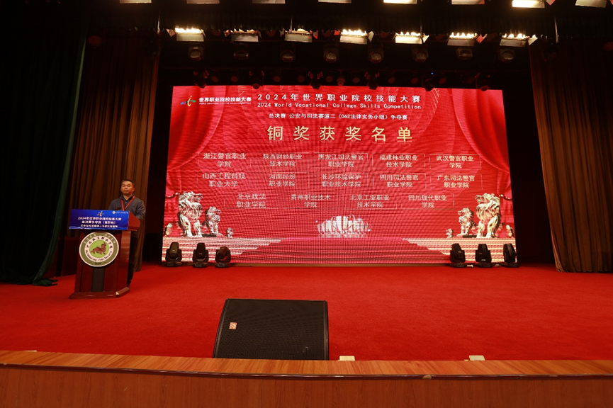 本网讯 2024年世界职业院校技能大赛总决赛公安与司法赛道二(062法律实务小组)争夺赛的比赛,10月28日在河北政法职业学院落下帷幕。来自全国48支代表队的参赛选手(包括全国职业本科)同台竞技,竞争十分激烈。我校学生冯天顺、余程铭、史志钊、徐雨琪组成的代表队,在我校马克思主义学院谢福荣、于蓓蓓老师的精心指导下,克服国赛赛制改变、训练时间短暂等诸多困难,日夜备赛,及时应变、奋力拼搏,荣获铜奖。这也是目前福建代表队在该赛项上首次、唯一获奖的队伍。