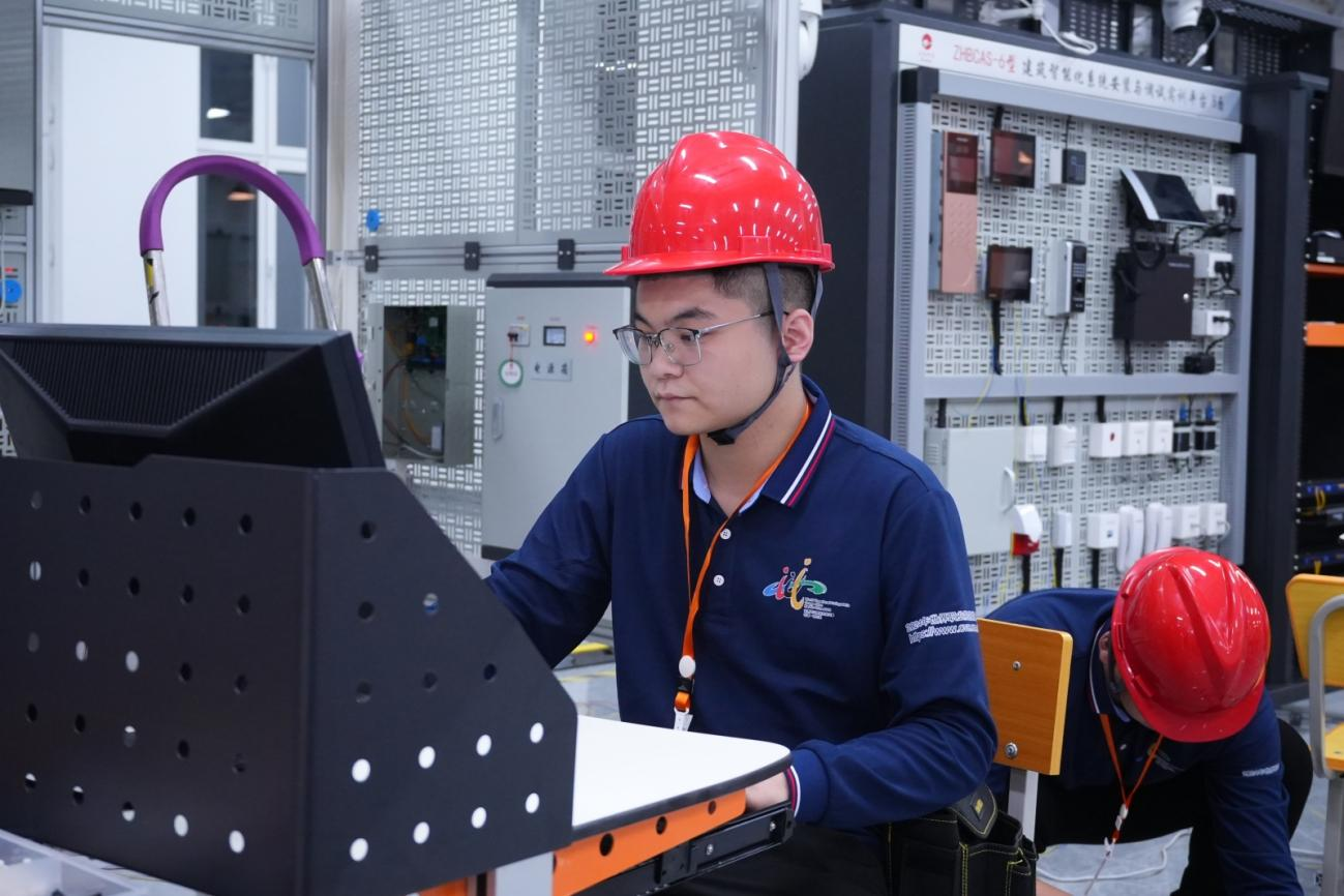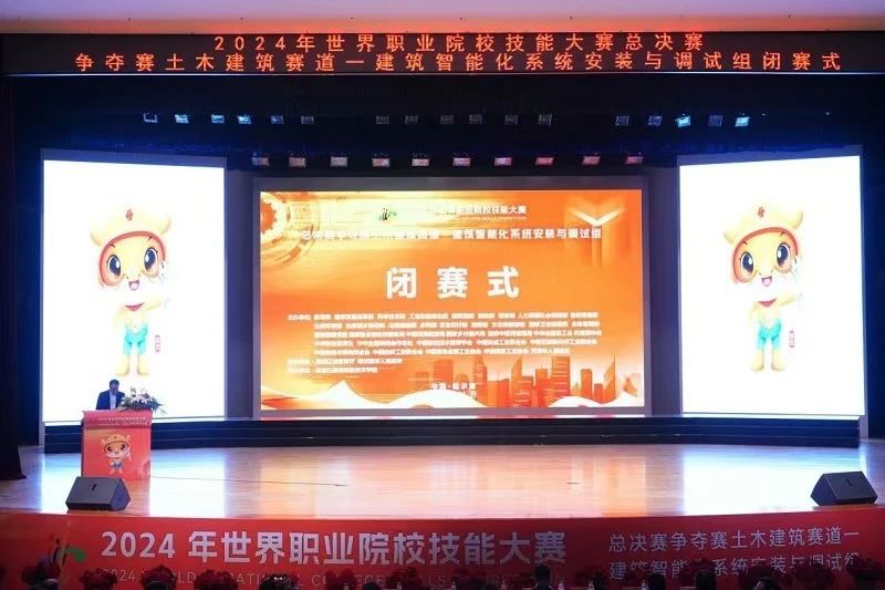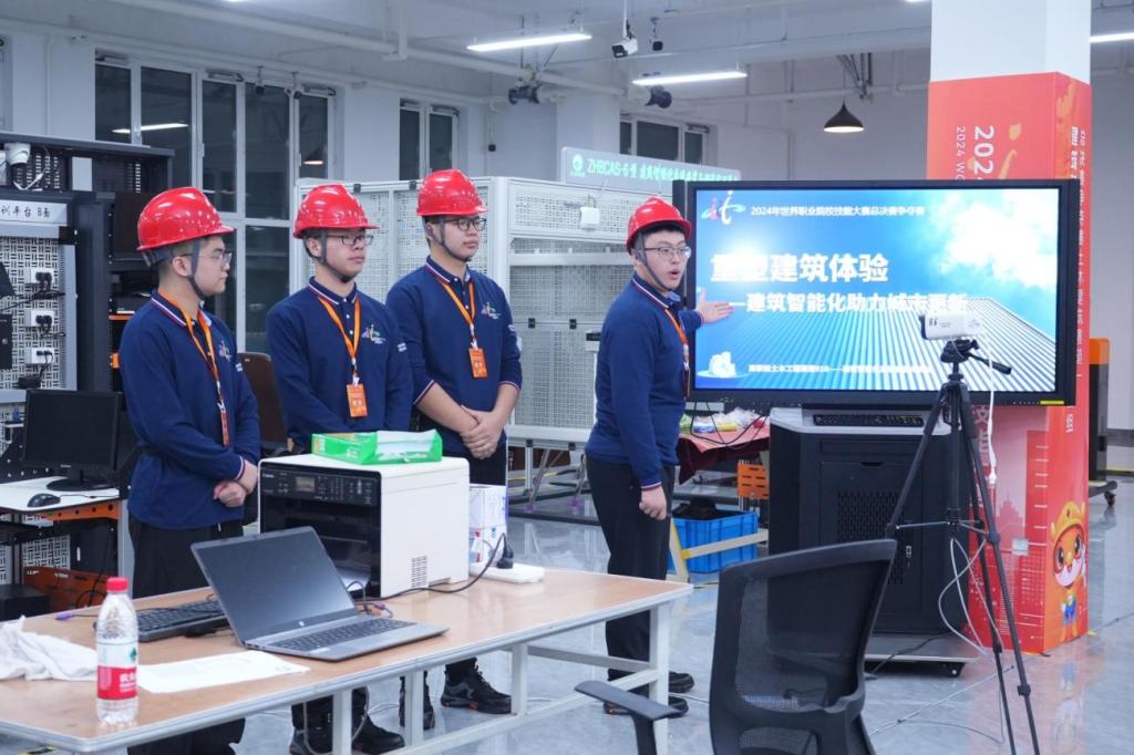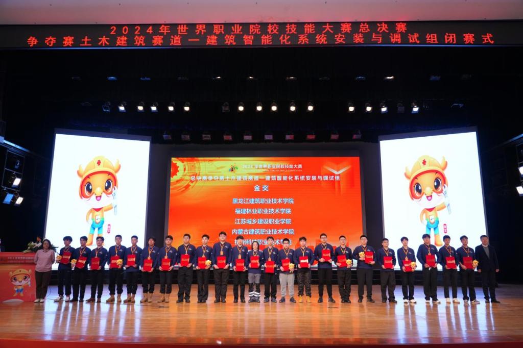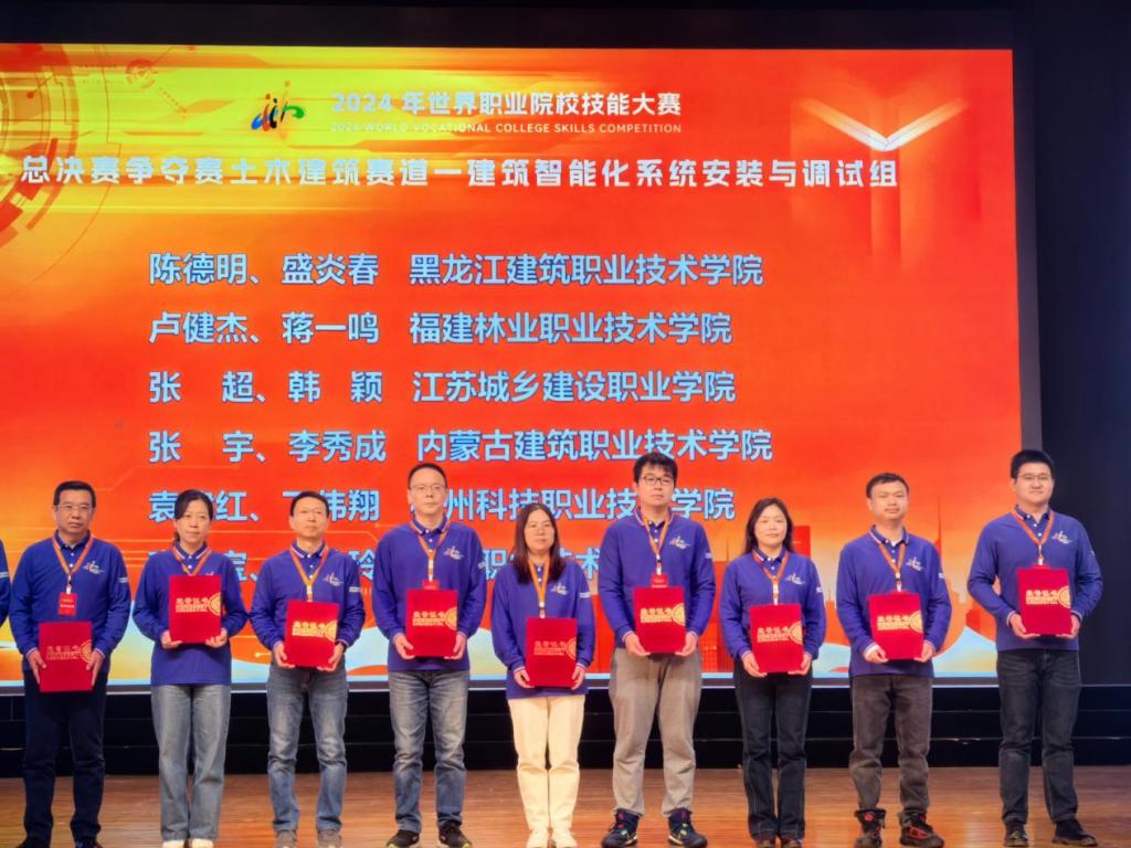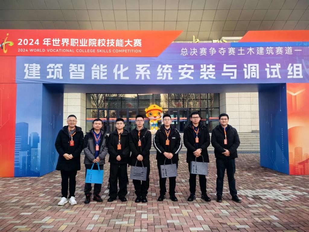本网讯 10月28日至31日,在2024年世界职业院校技能大赛(高职组)总决赛“建筑智能化系统安装与调试”赛项中,我院林剑雄、连林炜、任熠、官豪轩四位同学在建筑工程系主任彭忠伟带队以及卢健杰、蒋一鸣老师的指导下,从来自全国29个省、市、自治区的56个参赛队、207名选手中脱颖而出,凭借扎实专业素养、现场卓越表现一举夺得全国金奖,指导教师获优秀指导教师荣誉称号。