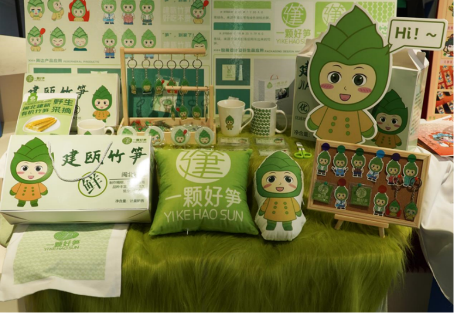 LOGO设计本着以打造地方品牌为核心的内涵导向,注重美食文化的传播,该设计主体部分为“建”“笋”二字的组成,再结合正圆,设计成一个正负形的标志,主色调为绿色,体现了笋原生态,健康的特点。整体简洁,易识别,从而达到对“一颗好笋”品牌的宣传效果,IP的整体形象是以笋为原型作为IP的主要元素,突出笋的饱满。整体造型圆润,造型非常讨喜,具有亲和力。