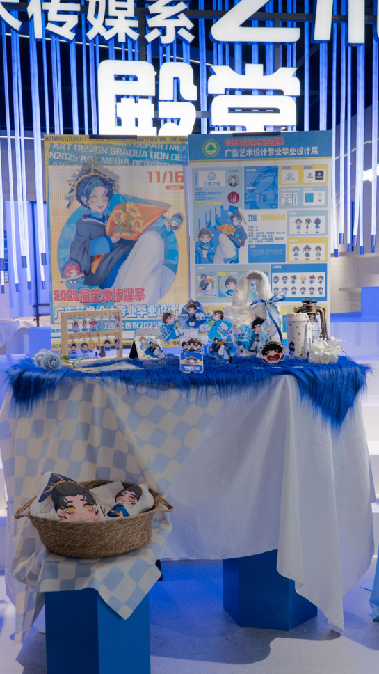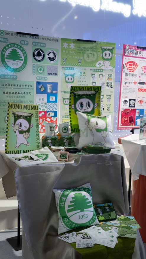 本网讯 兿·林空间,创意无限!2025届广告艺术设计毕业展于11月14日-12月16日在艺术楼展厅一楼举行。本次毕业展围绕校园文化、非遗以及农产品三个主题开展,由学生独立设计IP、LOGO。广告艺术设计的学子大展身手、各显神通,用他们最天马行空的想象力和独具匠心的创造力,让一件件创意作品的落地组成了毕业展的特别篇章。