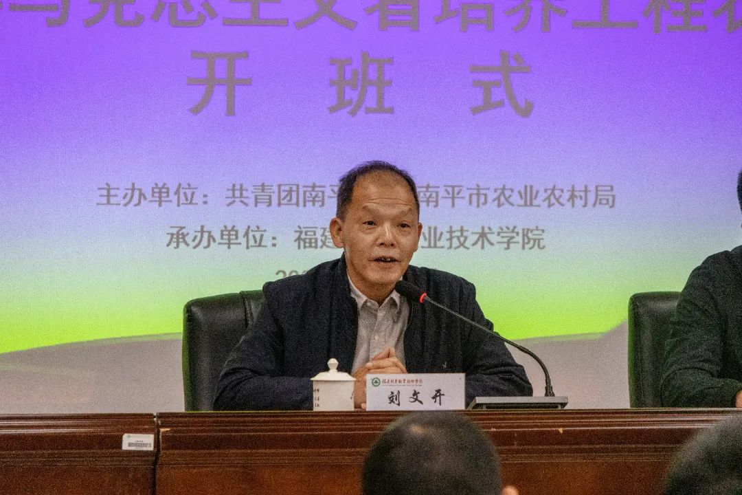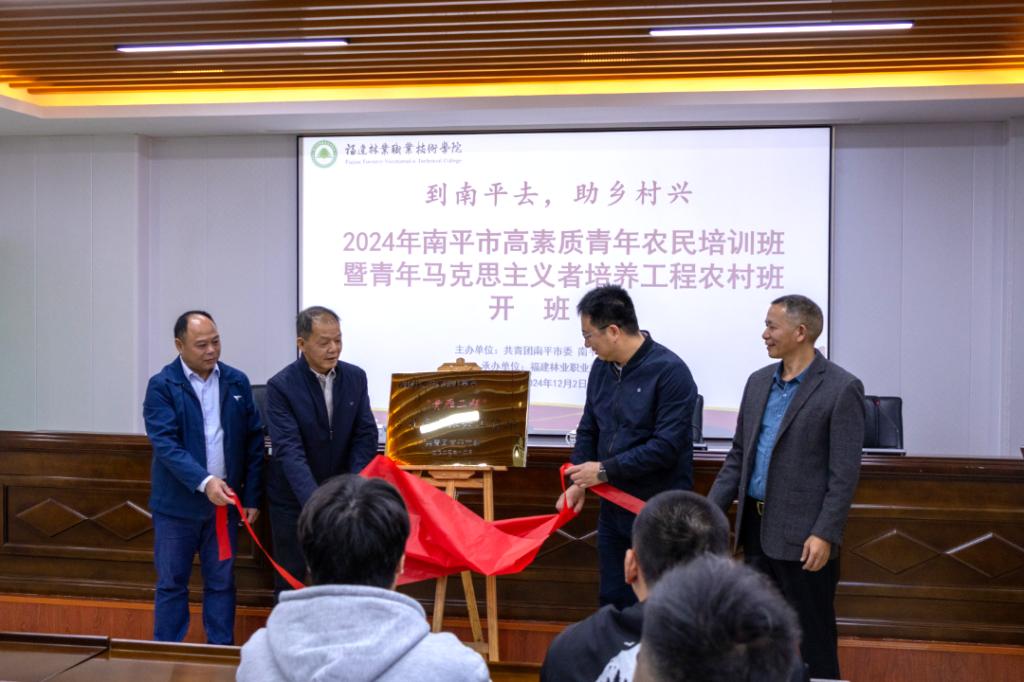 本网讯 2024年12月2日,南平市高素质青年农民培训班暨青年马克思主义者培养工程农村班在我院江南校区顺利开班。福建林业职业技术学院党委副书记、院长刘文开,共青团南平市委书记张嘉明,南平市农业农村局四级调研员魏学贵,福建林业职业技术学院继续教育学院副院长陈元镇出席开班式。开班式由陈元镇主持。