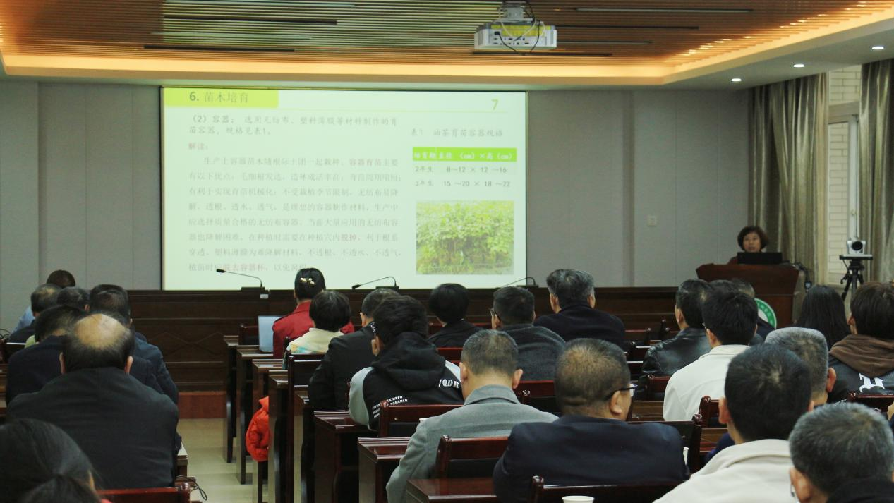 图9 福建省林科院副院长丁珌作香榧项目技术培训