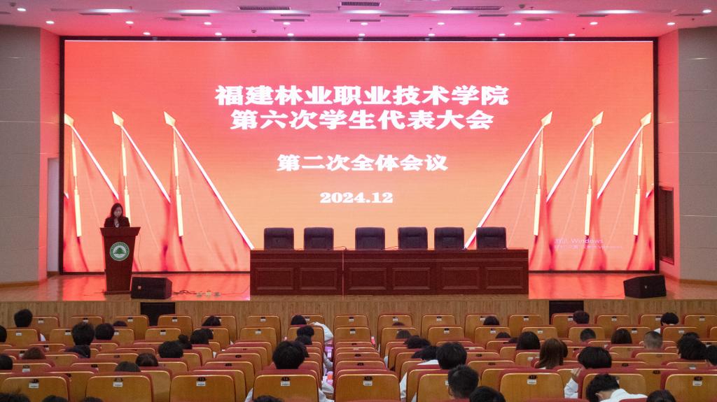 大会第一次全体会议上,全体代表听取、审议《福建林业职业技术学院第五届学生委员会工作报告》。丁慧琳同学代表第五届学生会作题为《青春为中国式现代化挺膺担当,奋力谱写福建林业职业技术学院团学工作新篇章》的报告。