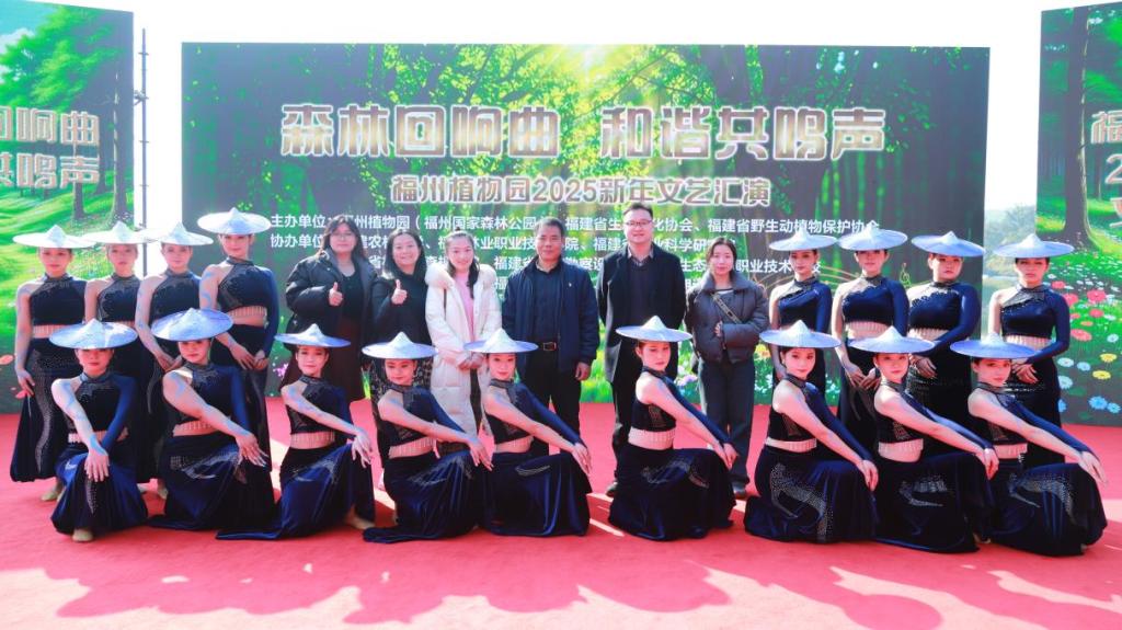 本网讯 2025年元旦上午,以“森林回响曲 和谐共鸣声”为主题的“福州植物园2025新年文艺汇演”活动在福州植物园举行。我院由游旋老师指导的傣族舞蹈《陶醉了》受邀参加文艺汇演。我院党委书记陈建辉受邀观看演出。