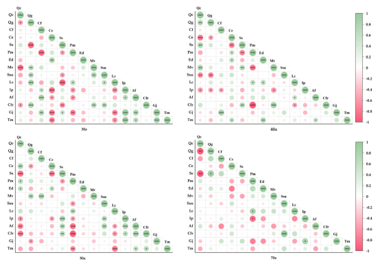 该研究团队采用空间代替时间的方法,在南平市葫芦山林场选取30 - 70年不同演替阶段的样地,探讨了亚热带壳斗科群落结构组成和种间关系的变化。研究发现,群落演替早期,优势树种的重要值差异较小;随着演替推进,中性和耐荫树种的重要值逐渐增加。林分密度在演替中期(50年)达到最低,而材积达到最高。喜光树种的胸径分布始终呈倒J形,耐荫树种则从倒J形转变为钟形。种间关系方面,50年后正相关逐渐增强,70年时多数物种对无显著相关性,种间关系相对宽松。生物多样性指数先降后升,50年时最低。这表明群落演替过程中,物种竞争从激烈逐渐转为温和,后期种间关系相对稳定,群落维持着动态平衡。