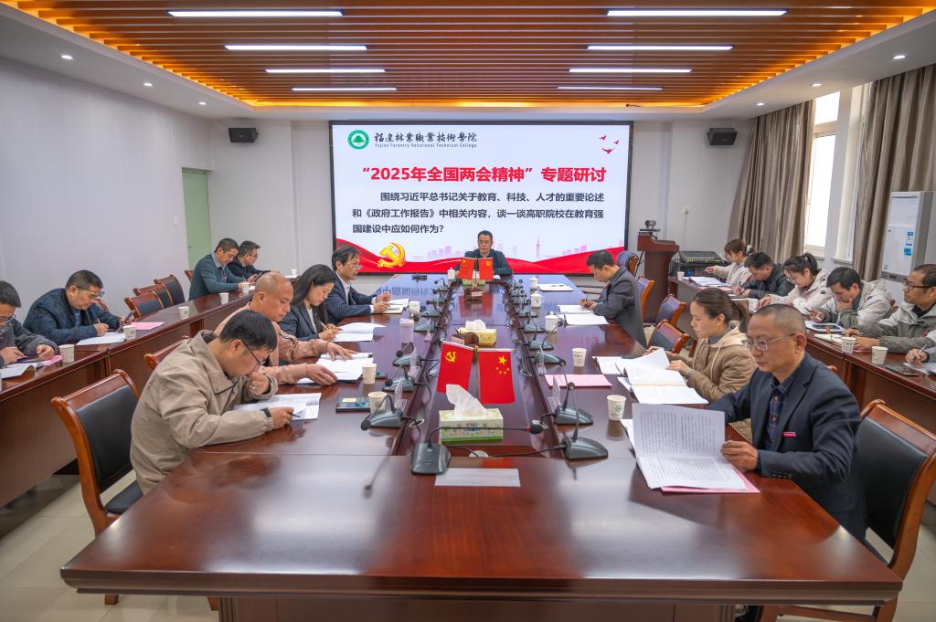 会议强调,今年的全国两会,是在“十四五”规划收官,进一步全面深化改革的关键之年召开的重要会议,对于推动中国式现代化实现新突破、取得新成就,具有重大意义。一要深学细悟笃行,迅速掀起学习热潮。要把学习宣传贯彻习近平总书记重要讲话精神和全国两会精神作为当前的重大政治任务,把思想和行动统一到党中央、省委省政府决策部署上来,为加快新福建建设贡献林职力量。二要加强思政引领,落实立德树人任务。全面实施新时代立德树人工程,深化教育教学综合改革,开展集体备课、研讨,用党的创新理论武装青年,激励大学生把个人成长与国家发展、时代需求紧密结合,培养担当民族复兴大任的时代新人。三要坚持实干为先,做好中心工作。要将学习贯彻全国两会精神与抓好学院各项工作统筹起来,融入教育教学、科学研究、管理服务等各领域各环节。