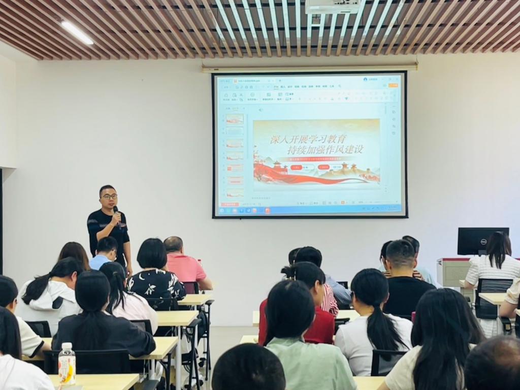黄晖副院长结合学院工作实际,要求党员领导干部要以身作则,将作风建设与学院高质量发展紧密结合,重点围绕学生利益、教职工权益、学校治理等关键领域,坚决反对形式主义、官僚主义,推动形成风清气正的政治生态,筑牢拒腐防变的思想防线,为学校事业高质量发展提供坚强保障。