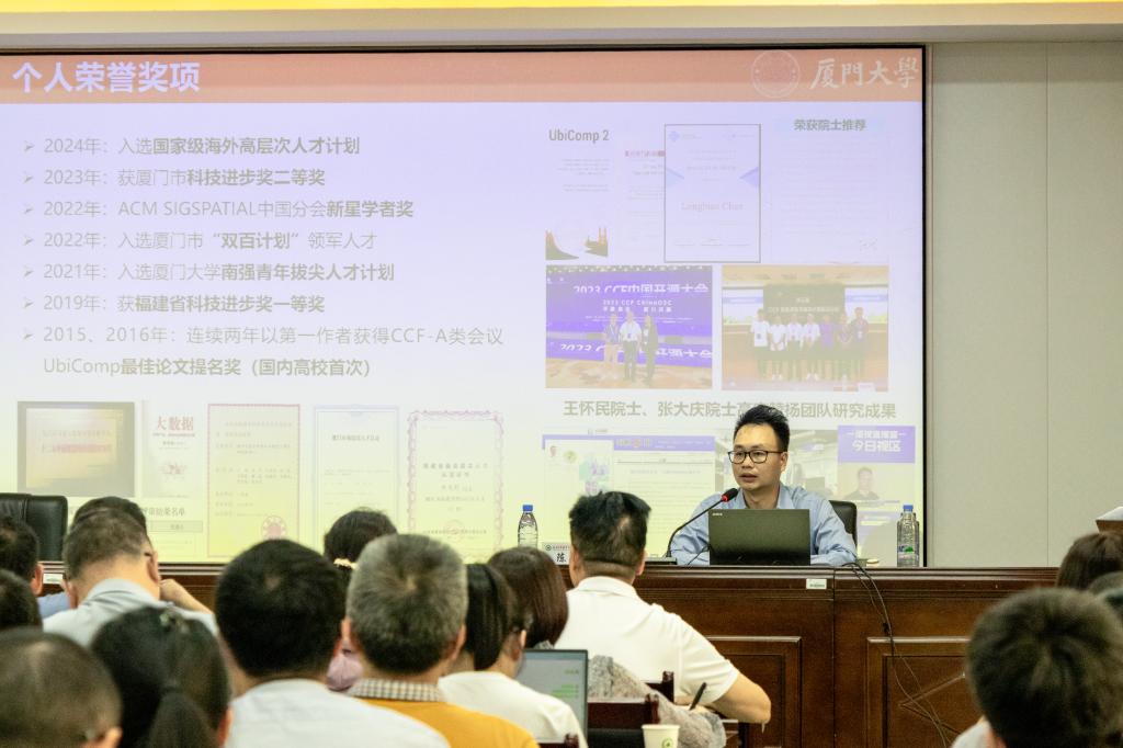 本网讯 为深入学习习近平总书记在中共中央政治局第二十次集体学习时的重要讲话精神,深化人工智能技术在职业教育领域的创新应用,全面提升教师队伍的智能教育素养,推动学院教育教学模式创新与治理能力升级,5月27日下午,院党委书记陈建辉在江南校区行政楼五楼会议室主持召开2025年第5次党委理论学习中心组学习会,邀请国家级海外高层次人才、厦门市“双百计划”领军人才、厦门大学信息学院副教授、博士生导师陈龙彪作专题辅导。党委理论学习中心组成员、各系各部门党政负责人、宣传员、马克思主义学院专职教师参加学习。