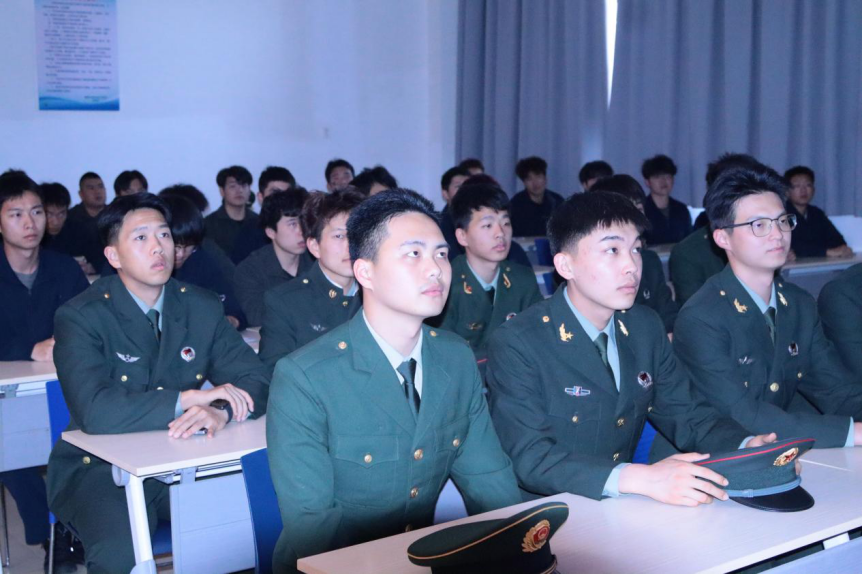 ▲大学生军事类社团军鹰协会退役士兵学生在教室集中观看“千万师生同上一堂国家安全教育课”主题直播