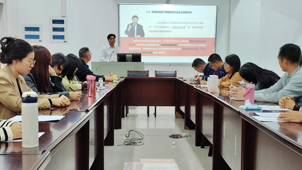 本网讯 为进一步学习领悟党的二十届三中全会精神,2024年11月19日下午,学院党委副书记严绍裕受邀为建筑工程系全体教师党员讲授“学习领悟党的二十届三中全会精神”专题党课。党课由建筑工程系党总支书记魏长专主持。