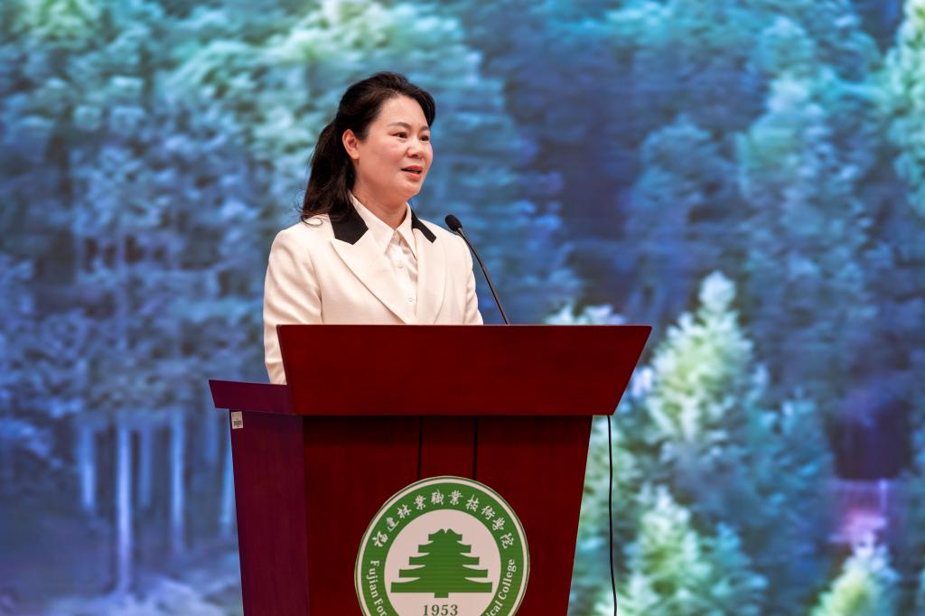周宁县“黄振芳家庭林场先进事迹”宣讲员黄娟娟深情讲述了《三代人牢记初心嘱托 一片绿绘就“四库全书”》的故事。“造林大王”黄振芳的家庭林场三棵树三代人把青春交付给青山、践行森林“四库”重要理念,带领与会师生穿越时间的长河,见证三代林业人如何以实际行动践行绿水青山就是金山银山的理念,守护好我们共有的绿色家园。