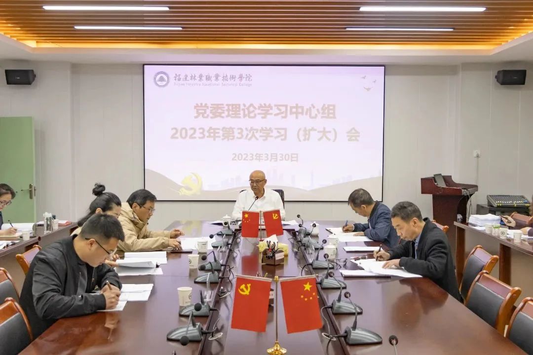 本网讯 2023年3月30日下午,院党委书记万泉主持召开2023年第3次党委理论学习中心组学习(扩大)会议,专题研讨全国两会精神。会议传达了习近平总书记在十四届全国人民代表大会第一次会议上的重要讲话精神和政府工作报告。与会人员根据2023年全国两会有关教育内容和福建省教育厅2023年工作要点,结合个人工作实际,就办好人民满意教育开展专题研讨。