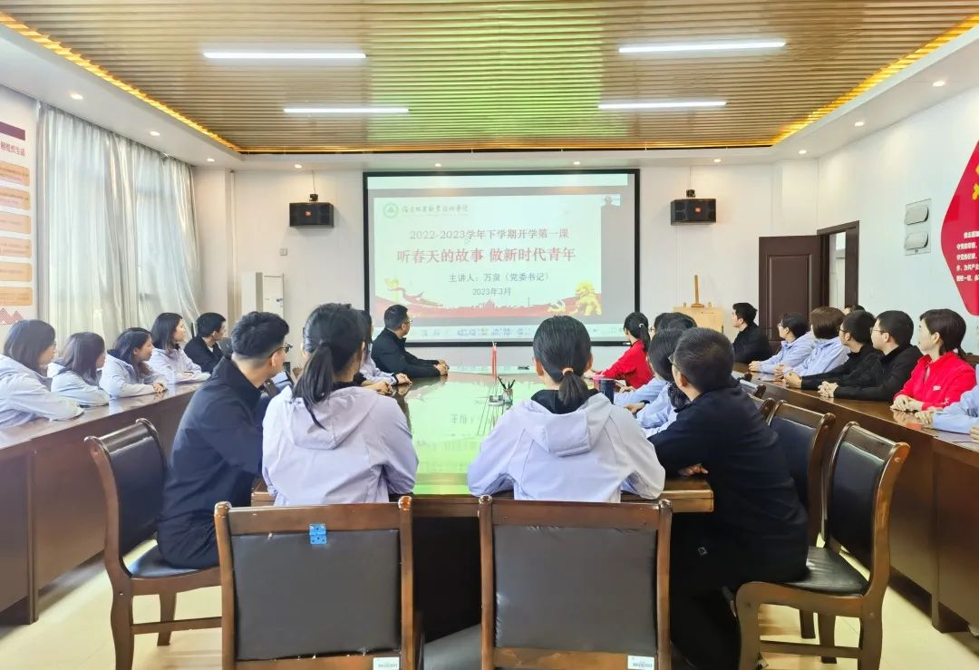 讲座围绕“东方风来满眼春,党的二十大擘画新时代的教育蓝图”“自信自强守正创新,在职业教育的春天里勇毅前行”“春回大地万物复苏,疫情防控进入新阶段”“不负春光不负韶华,立志做新时代好青年”四个方面娓娓道来,讲述了那些动听的“春天的故事”,万名师生线上线下齐感受春暖花开、春潮澎湃。