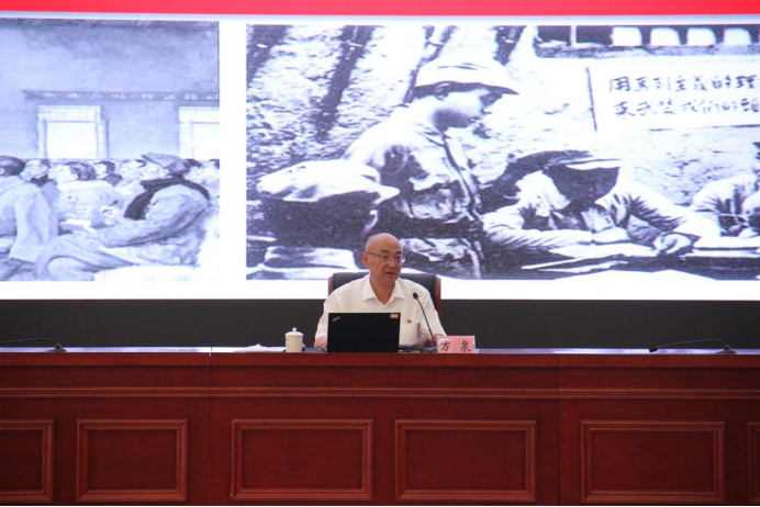 万泉书记以《从百年党史中汲取前行的力量》为题,从“为什么开展党史学习教育?怎样开展党史学习教育?党史学习教育学什么?”三个方面对党的百年辉煌历史进行了系统阐释和深入解读。