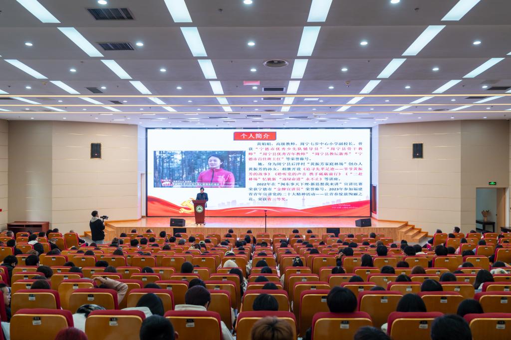 周宁县“黄振芳家庭林场先进事迹”宣讲员黄娟娟深情讲述了《三代人牢记初心嘱托 一片绿绘就“四库全书”》的故事。“造林大王”黄振芳的家庭林场三棵树三代人把青春交付给青山、践行森林“四库”重要理念,带领与会师生穿越时间的长河,见证三代林业人如何以实际行动践行绿水青山就是金山银山的理念,守护好我们共有的绿色家园。