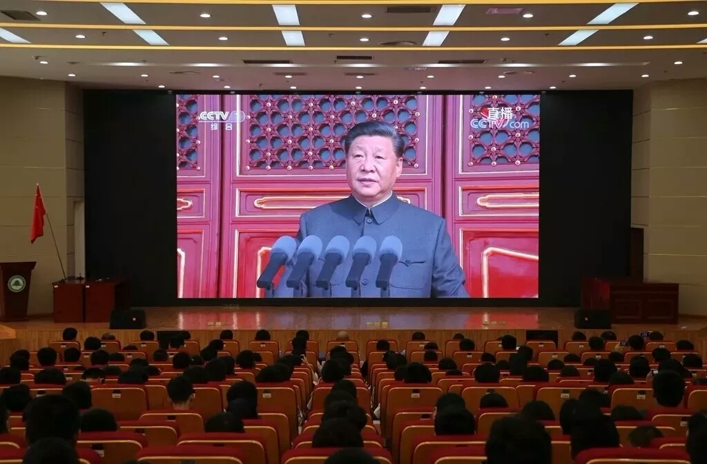 学院党委高度关注盛会的召开,第一时间组织党员干部及师生通过不同形式收看了大会以及阅兵式、群众游行实况直播。