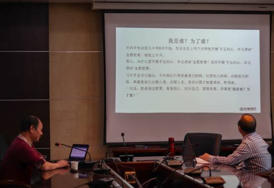 郭部长主要就“为什么要开展‘不忘初心、牢记使命’主题教育”和“怎样开展‘不忘初心、牢记使命’主题教育”两个方面内容展开论述,他强调指出,中国共产党初心和使命,就是为中国人民谋幸福,为中华民族谋复兴。通过图文并茂的时事政治案例回答了“我是谁?为了谁?”的根本问题。他从“只有不忘本来,才能面向未来!”、“党内严峻的现实需要我们‘不忘初心、牢记使命’”、“从执政共产党的教训看,需要我们‘不忘初心、牢记使命’”、“民族伟大复兴,需要我们‘不忘初心,牢记使命’”等四个方向深刻回答了“为什么要开展‘不忘初心、牢记使命’主题教育”;从“如何实现主题教育目标”、“如何开展调查研究”、“调研成果如何转化”、“如何征求意见”、“如何开好专题会议和民主生活会”“党支部党员有如何要求”、“如何创新主题教育方式方法”、“主题教育办如何开展工作”等八个方面回答了“怎样开展‘不忘初心、牢记使命’主题教育”这个关键性问题。