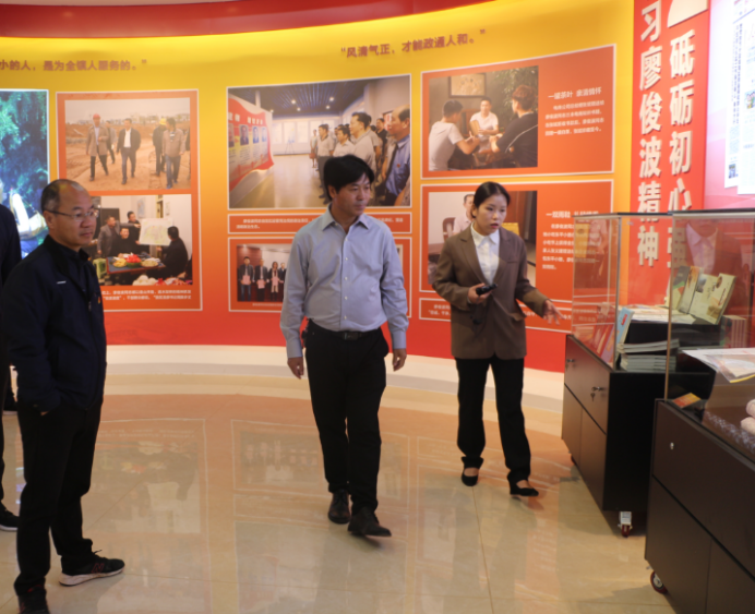 在讲解员的讲述下,大家回顾了廖俊波同志一心为公、清白做人、干净为官的先进事迹。“能在现场就不在会场”、“全天候服务,24小时办公”、“企业建到哪里,服务就跟到哪里”、“背着石头上山也要干”、“小县也有大作为”这些深深刻印着廖俊波干事创业精神的话语正是他苦干实干精神的真实写照,体现了他信念坚定,对党忠诚的政治品质,心系政和改革发展、勤政为民的公仆情怀,敢于担当、苦干实干的务实作风和忘我工作、大胆创新的敬业精神。