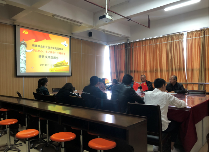 本网讯 11月21日下午,园林系在系会议室召开“不忘初心、牢记使命”主题教育调研成果交流会。系领导班子成员和全系教师党员参加交流会。交流会由系党总支副书记陈剑勇主持。