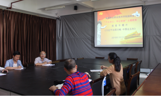 按照园林系“不忘初心、牢记使命”主题教育工作安排,11月1日中午,园林系党总支全体成员在系会议室观看专题片《习近平治国方略:中国这五年》。学院主题教育指导组成员叶新颖莅会指导。会议由园林系党总支副书记陈剑勇主持。