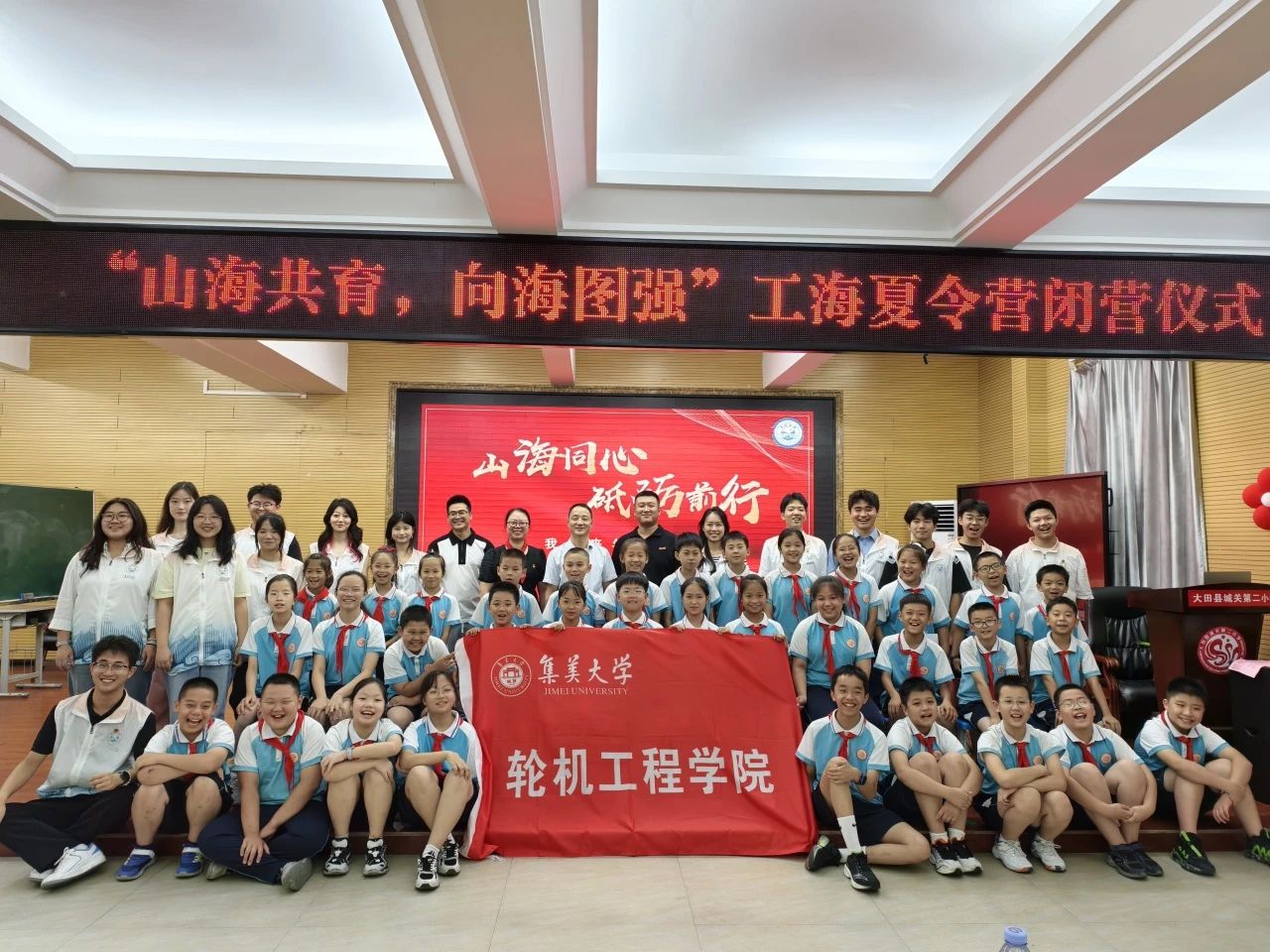 集美大学轮机工程学院“工”行山海实践队赴大田县开展“山海共育,向海图强”夏令营,将跨越126公里的“山海情”隽永绵延。通过实践工海科技课程与“护海知行”课堂将嘉庚精神的薪火相传与海洋振兴的科技探索深度融合,为“山”的孩子,传递“海”的梦想。在别开生面的主题团课上传承嘉庚精神,根植“向海图强,忠公报国”的信念。