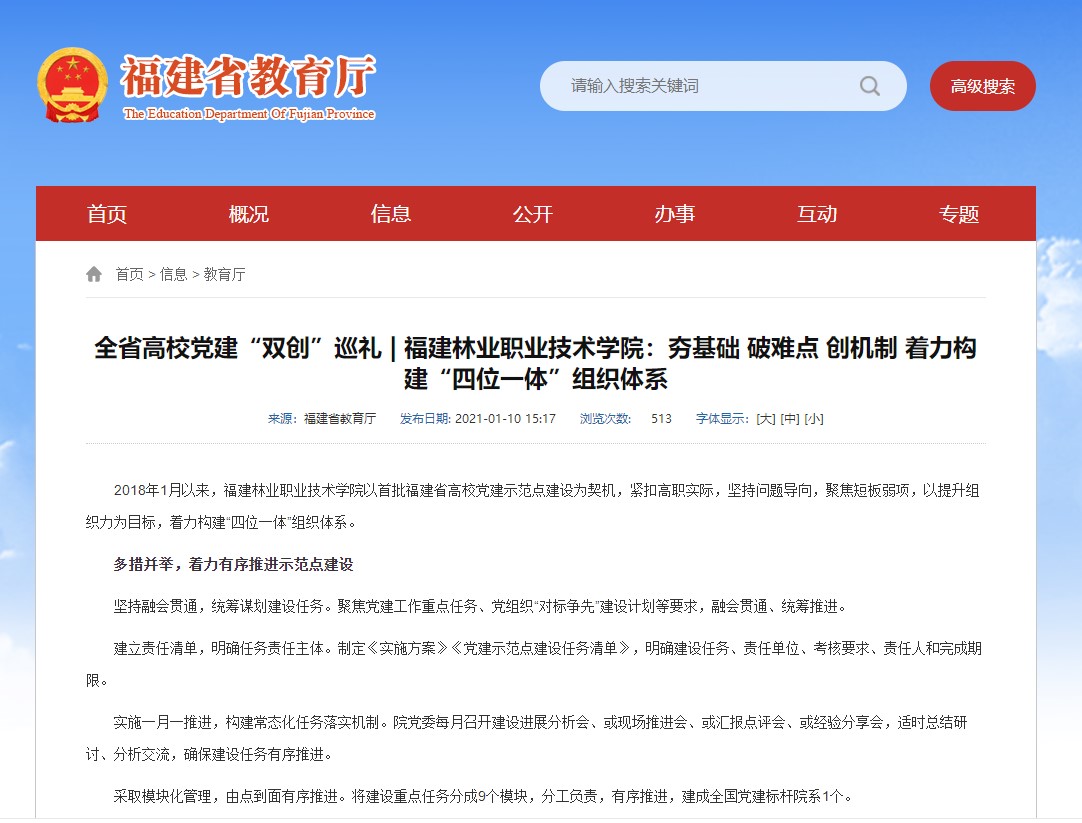 全省高校党建“双创”巡礼 | 福建林业职业技术学院:夯基础 破难点 创机制 着力构建“四位一体”组织体系