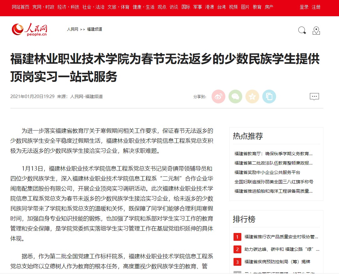 为进一步落实福建省教育厅关于寒假期间相关工作要求,保证春节无法返乡的少数民族学生安全平稳度过假期生活,福建林业职业技术学院信息工程系党总支积极为无法返乡的少数民族学生接洽实习企业,解决求职难题。