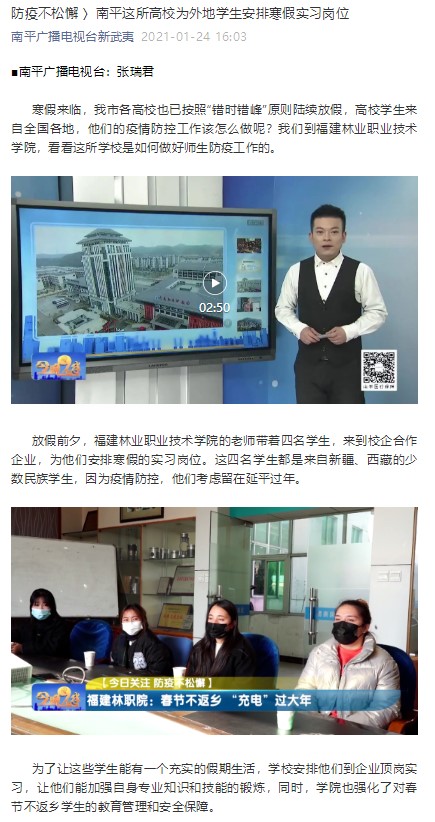 防疫不松懈 〉南平这所高校为外地学生安排寒假实习岗位