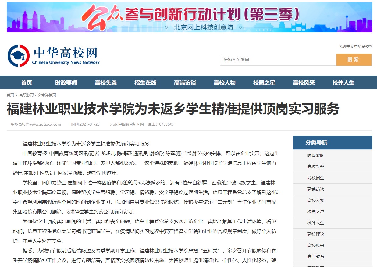 福建林业职业技术学院为未返乡学生精准提供顶岗实习服务