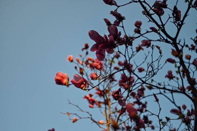 玉兰肤如凝脂,绵苞乍褪。又缘于高处,最是可爱。刻玉玲珑,吹兰芬芳。多情不改年年色,千古芳心持赠君。