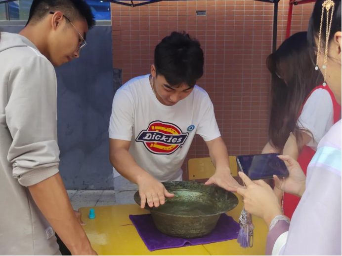 活动中还穿插有传统艺术趣味体验:鱼洗、点茶、雕版印刷、活字印刷、年画拓印、汉服剪纸、剪窗花、包粽子、写毛笔字、扎染、围棋和传统竞技游戏体验:投壶、踢毽子、吹乒乓球、升级版跳房子以及抽奖环节,激发了学生的参与度和兴趣度,加深了大家对中国传统文化的认识和了解,进一步增强了民族自豪感。