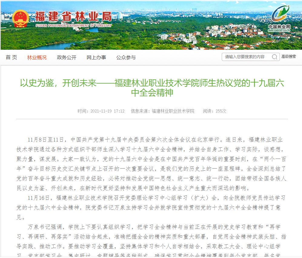 以史为鉴,开创未来——福建林业职业技术学院师生热议党的十九届六中全会精神
