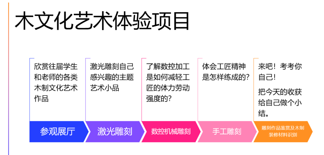 其次,利用家具设计与雕刻艺术专业的师生作品展厅作品和模型,让大家感受榫卯技术与雕刻艺术这两大经典国粹,并解释了为什么我们需要去继承这两大经典国粹艺术。