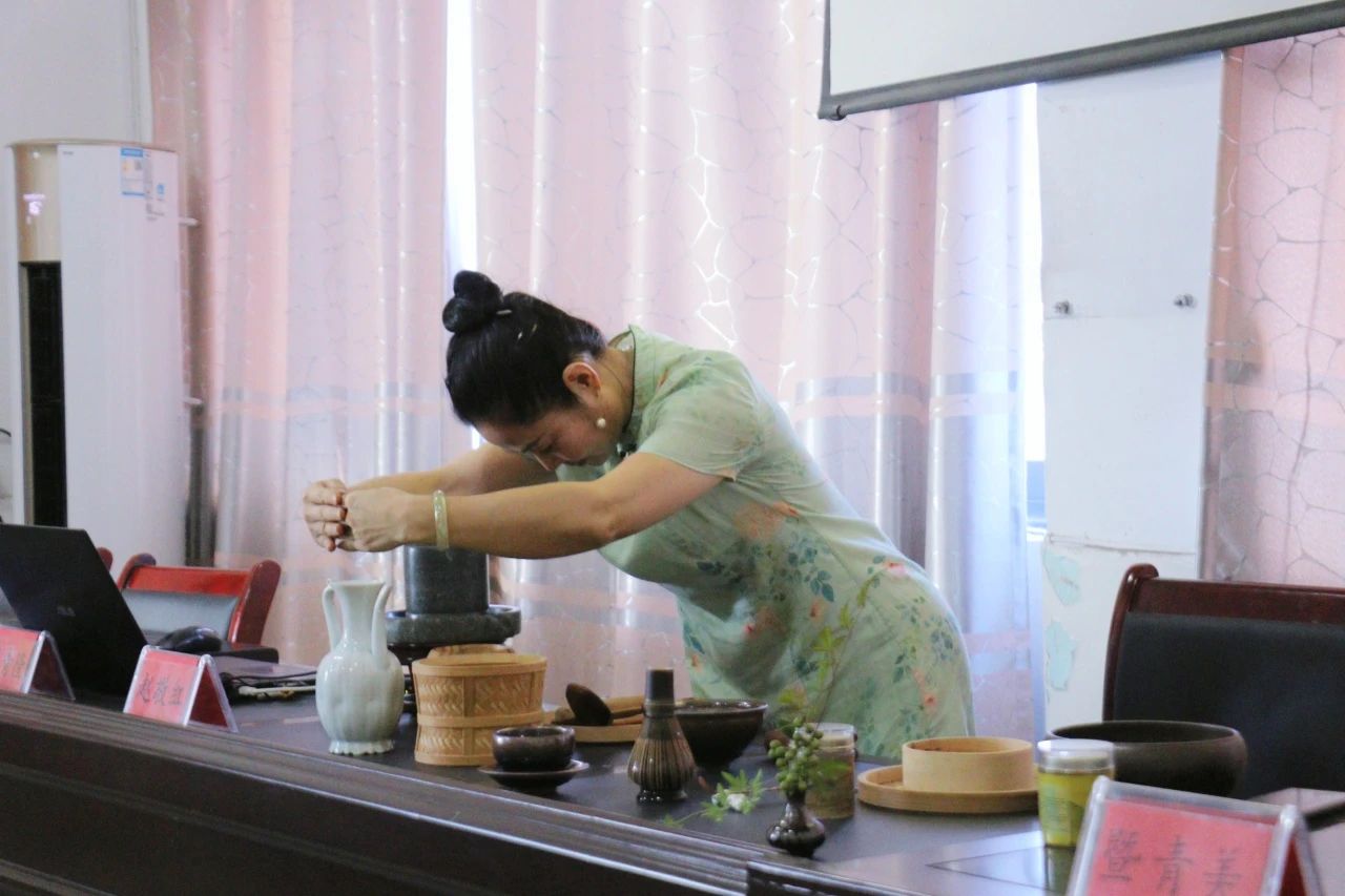 赵老师为学员们介绍了宋代文人雅士的生活的“四艺”,并向学员们教授了《大观茶论》中记载,点茶器具、手法、步骤及其要点。