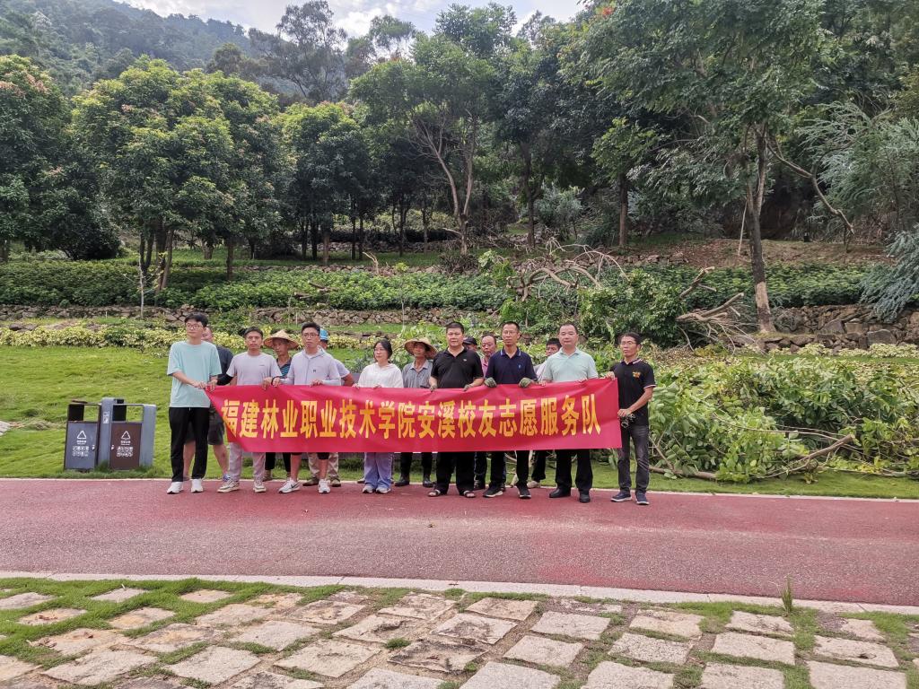 受5号台风“杜苏芮”的影响,位于安溪县凤山绿道的绿化景观带受到严重的危害,急需扶树疏堵,清理步道路障,助力恢复正常的生产生活条件。得知情况后,校友泉州市林业局李丽玲及时倡议,各届安溪校友积极响应,纷纷自发成立了福建林业职业技术学院(福建林业学校)志愿服务队,志愿队的校友们利用各自所学的专业,发挥各自优势,积极投身于灾后重建工作,用实际行动践行“天麟人”的责任和担当。经过一天的忙碌,重建工作得到当地群众的一致好评。